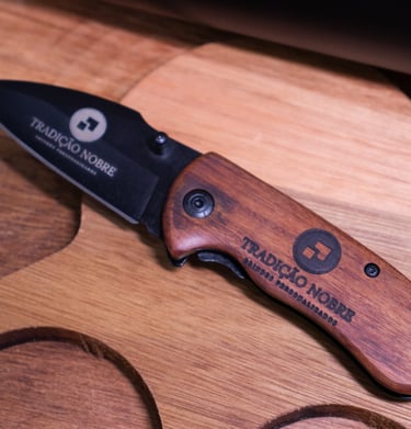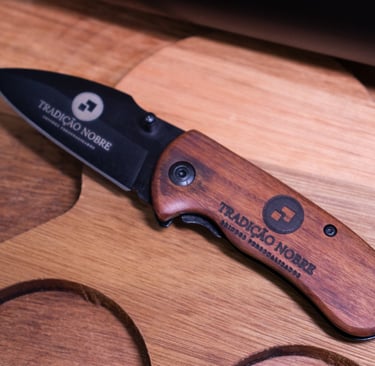 Nossos produtos incluem facas, canivetes e copos personalizados em inox.